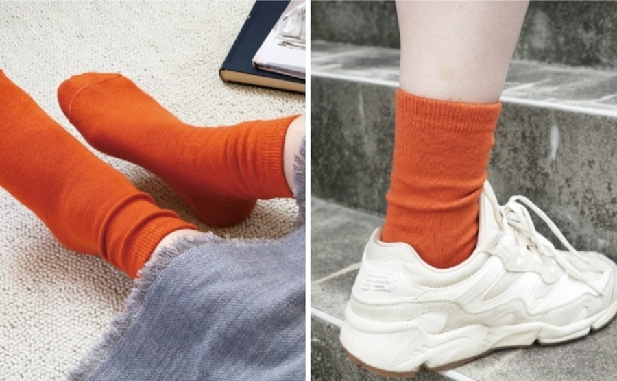 上記のような機能を兼ね備えたメリノウールを薄手で編みあげた【アキナイクツシタ】