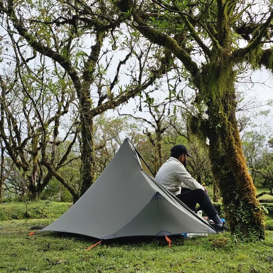 ドームテントのような自立式ではなく、ペグダウン前提のワンポールを選んだのは何と言っても「軽さ」。