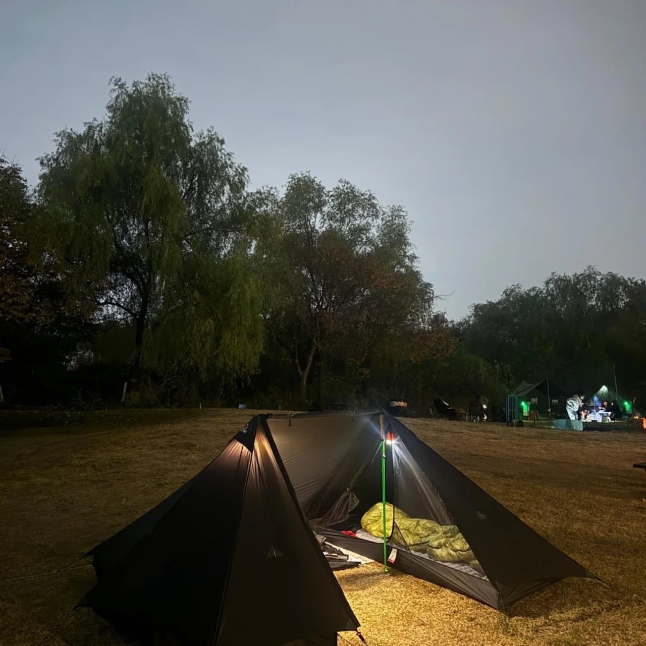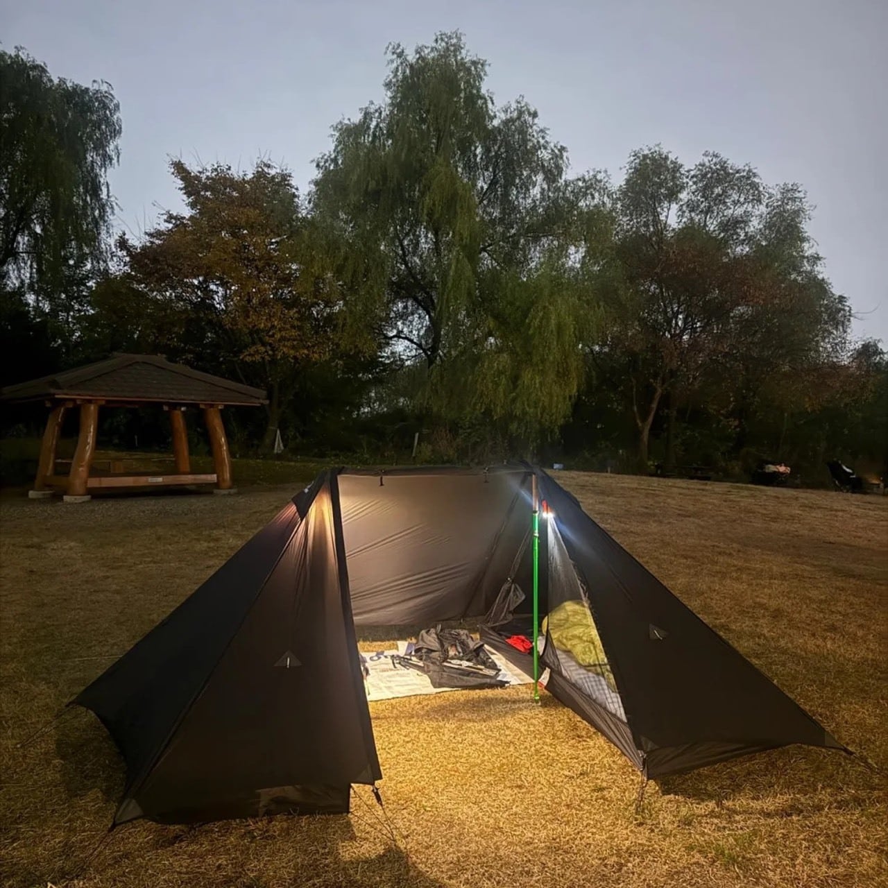 1人で使用する際はインナーテントを1つ置いていくことで携帯性を向上。
